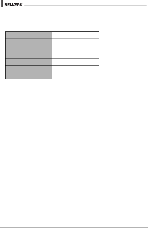 • Indstillingerne i tabellen nedenfor at faste under optagelse med denne funktion.