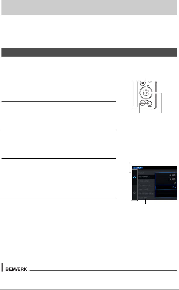 Det følgende er de menuoperationer, som du kan anvende for at konfigurere