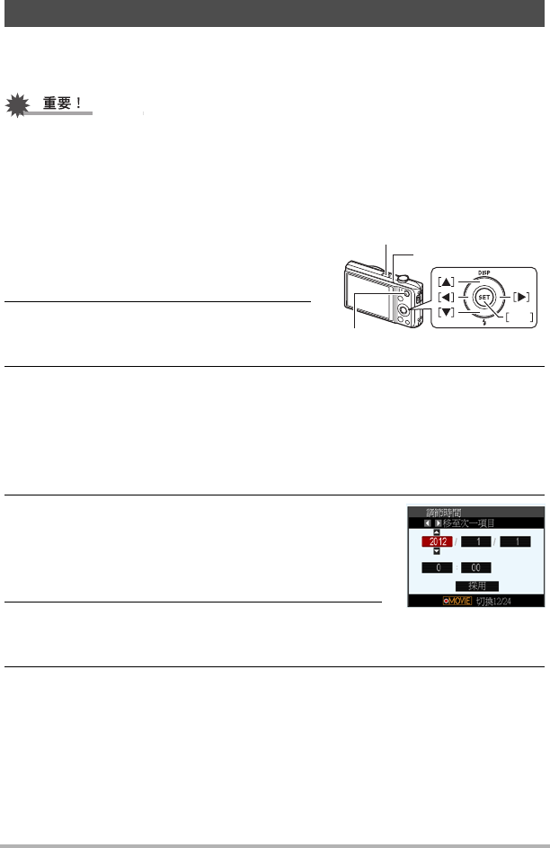 時間設定。如不正確設定日期和時間,則會導致影像上記錄的日期和時間出現錯誤。