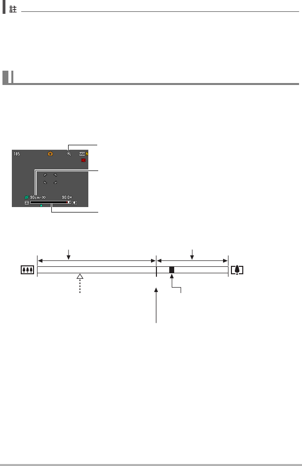 • 進行變焦時,顯示屏上會顯示目前變焦設定的變焦列。