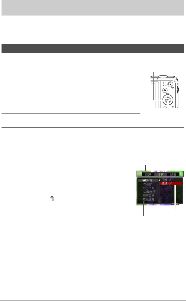 作方式。有關顯示選單畫面操作方式的資訊,請參閱第70頁。