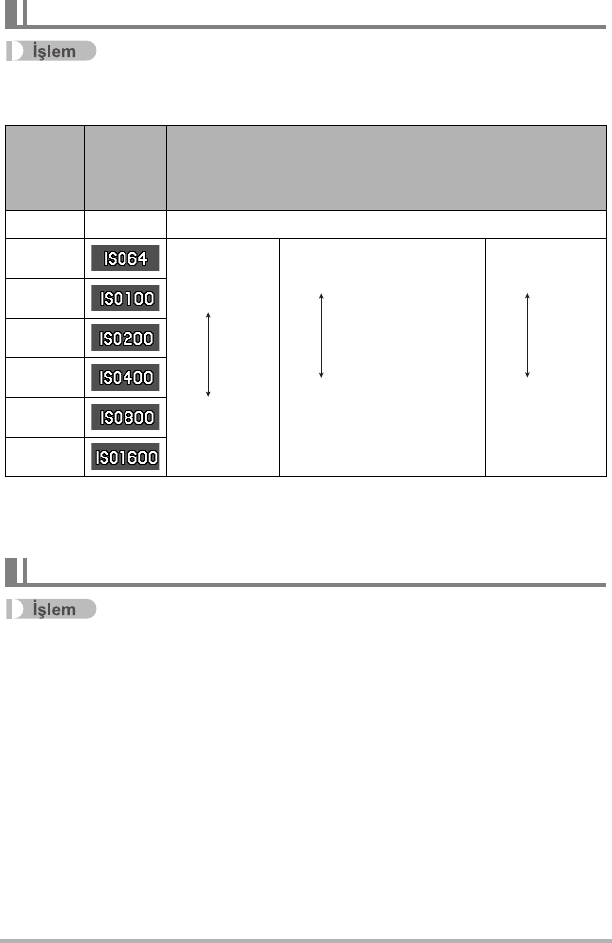 • “Otomatik” ISO hassasiyeti daima filmler için, geçerli ISO hassasiyeti ayarından