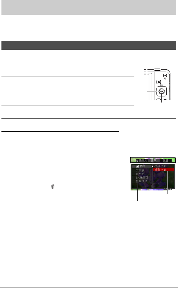 • 按[4] 而非 [SET] 可应用所选设定并返回选单项目