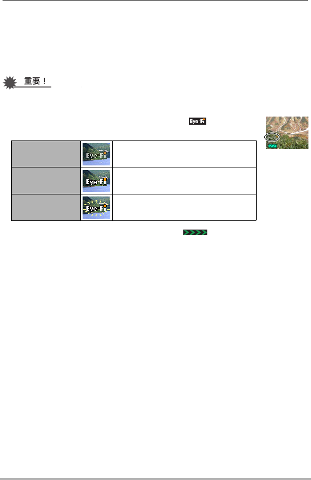 • 某些相机设定、电池电量或操作状况下,可能无法进行正常的 Eye-Fi 卡数据传输。