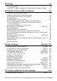 ❚❙ Printing 79 Printing Snapshots. . . . . . . . . . . . . . . . . . . . . . . . . . . . . . . . . . . . . . . . . . . . . 79 Using DPOF to Specify Images to be Printed and the Number of Copies. . . 80 ❚❙ Using the Camera with a Computer 83 Things you can do using a computer... . . . . . . . . . . . . . . . . . . . . . . . . . . . . . 83 Using the Camera with a Windows Computer . . . . . . . . . . . . . . . . . . . . . . . . 84 Viewing and Storing Images on a Computer. . . . . . . . . . . . . . . . . .