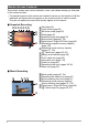 . Snapshot Viewing 1 2 3 4 bn bm bl bk 9 8 7 1Tab (page 25) 2Protect indicator (page 71) 5 3Folder name/file name (page 101) 4Snapshot image size (page 53) 5Image menu icon (page 66) 6Image scroll icons (pages 32, 62) 7Battery level indicator (page 20) 6 8Date/time (pages 21, 106) 9REC mode icon (page 26) bkInformation icon (page 110) blDelete icon (page 33) bmSlideshow icon (page 66) bnMenu icon (page 70) .