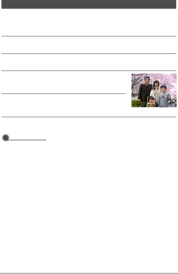 • The AF area setting (page 39) is ignored while face detection is enabled.