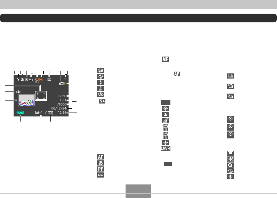 The monitor screen uses various indicators and icons to keep you informed of the camera’s status.