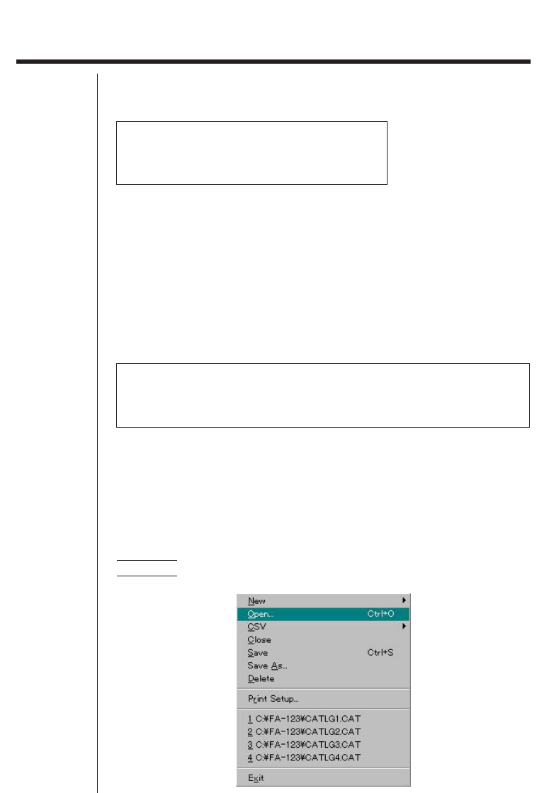 • Double check the following items whenever data transfer is not performed correctly. • Check for proper connection of the communication cable. • Check that the port was correctly selected using Link-Communications. • Make sure the correct Tool-Model Type (Link-Model Type on the Macintosh) is selected. k Transferring Files from Your Computer to Your Calculator 1. Select File-Open and open the catalog file that you want to use for the transfer. • Selecting File-Open causes a dialog box to appear.
