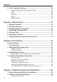Contents Chapter 1 Getting Acquainted ...................................................... 1 1. 2. 3. 4. Using the Main Menu ............................................................................ 2 Key Table ............................................................................................... 4 Key Markings ........................................................................................ 6 Selecting Modes .............................................................................