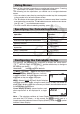 Using Menus Some of the calculator’s operations are performed using menus. Pressing , for example, will display a menu of applicable functions. The following are the operations you should use to navigate between menus. • You can select a menu item by pressing the number key that corresponds to the number to its left on the menu screen. • The indicator in the upper right corner of a menu means there is another menu below the current one. The > indicator means another menu above.
