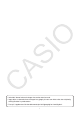CASIO COMPUTER CO., LTD. 6-2, Hon-machi 1-chome Shibuya-ku, Tokyo 151-8543, Japan One or more of the following patents may be used in the product. U.S.Pats. 5,166,897 5,210,708 5,535,317 5,539,867 SA1512-D © 2014 CASIO COMPUTER CO., LTD.