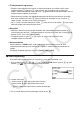 • {ReP}/{ImP} ... {real}/{imaginær} delekstrahering • {'r∠ }/{'a+bi} ... konverterer resultatet til {polær}/{rektangel} form • Du kan også bruke !a(i) i stedet for K3(CPLX) (K2(CPLX) på fx-7400GII) 1(i). • Løsninger oppnådd med Real, a+bi og r∠ moduser er forskjellige for potensrot (x')beregninger når x < 0 og y = m/n når n er et oddetall. Eksempel: 3x' (– 8) = – 2 (Real) = 1 + 1,732050808i (a+bi) = 2∠60 (r∠ ) • For å skrive inn « ∠ »-operatoren i polarkoordinatuttrykket (r∠ ), trykker du på !v(∠).