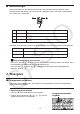 Voorbeeld (1 + 2i) + (2 + 3i) AK3(CPLX)* (b+c1(i)) +(c+d1(i))w * fx-7400GII: 2(CPLX) k Omgekeerde, vierkantswortel en kwadraat Voorbeeld (3 + i) AK3(CPLX)* !x(')(d+1(i))w * fx-7400GII: 2(CPLX) k Complexe getallen in poolcoördinaten Voorbeeld 2∠30 × 3∠45 = 6∠75 !m(SET UP)cccccc* 1(Deg)c3(r∠ )J Ac!v(∠)da*d !v(∠)efw * fx-7400GII, fx-9750GII: ccccc k Modulus en argument [OPTN]-[CPLX]-[Abs]/[Arg] Het toestel gaat ervan uit dat een complex getal a + bi kan afgebeeld worden als coördinaat op een vlak van G