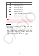 (1) 輸入表示式 (2) 計算結果 (3) 指示符號 • 如果在計算結果的右邊出現了 指示符號,表示顯示的計算結果未完, 右邊仍有未顯示的部分。使用 和 鍵來捲動計算結果顯示幕。 • 如果在輸入表示式的右邊出現了 指示符號,表示顯示的計算未完,右 邊仍有未顯示的部分。使用 和 鍵來捲動輸入結果顯示幕。請注 意,在 和 指示符號都顯示時,如果您想要捲動輸入表示式,您需 要先按下 鍵,然後使用 和 鍵進行捲動。 顯示幕指示符號 指示符號: 代表意義: 因為 鍵已按下,因此所有鍵盤會使用切換後的 功能。在您按下任一鍵以後,鍵盤的切換狀態將被 解除,而這個指示符號也會消失。 按下 鍵會進入字母輸入模式。在您按下任一鍵 以後,會退出字母輸入模式,而這個指示符號也會 消失。 M 這是儲存在獨立記憶體內的數值。 STO 計算器正在等待輸入變數名稱,以便為這個變數指 定一個數值。這個指示符號會在您按下 (STO) 之後出現。 RCL 計算器正在等待輸入變數名稱,以便調用這個變數 的數值。這個指示符號會在您按下 之後出現。 STAT 計算器在 STAT 模式之下。 CMPLX 計算器在 CMPLX 模式