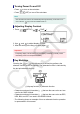 Factorial Function (!) Example: (5 + 3)! = 40320 5 3 (x!) 40320 Absolute Value Function (Abs) Note that the input method is different depending upon whether you are using Natural Display or Linear Display. Example: |2 - 7| × 2 = 10 (MthIO-MathO) (Abs) 2 7 2 10 (Abs) 2 7 2 10 (LineIO) Random Number (Ran#) Function that generates a pseudo random number in the range of 0.000 to 0.999. The result is displayed as a fraction when Natural Display is selected.