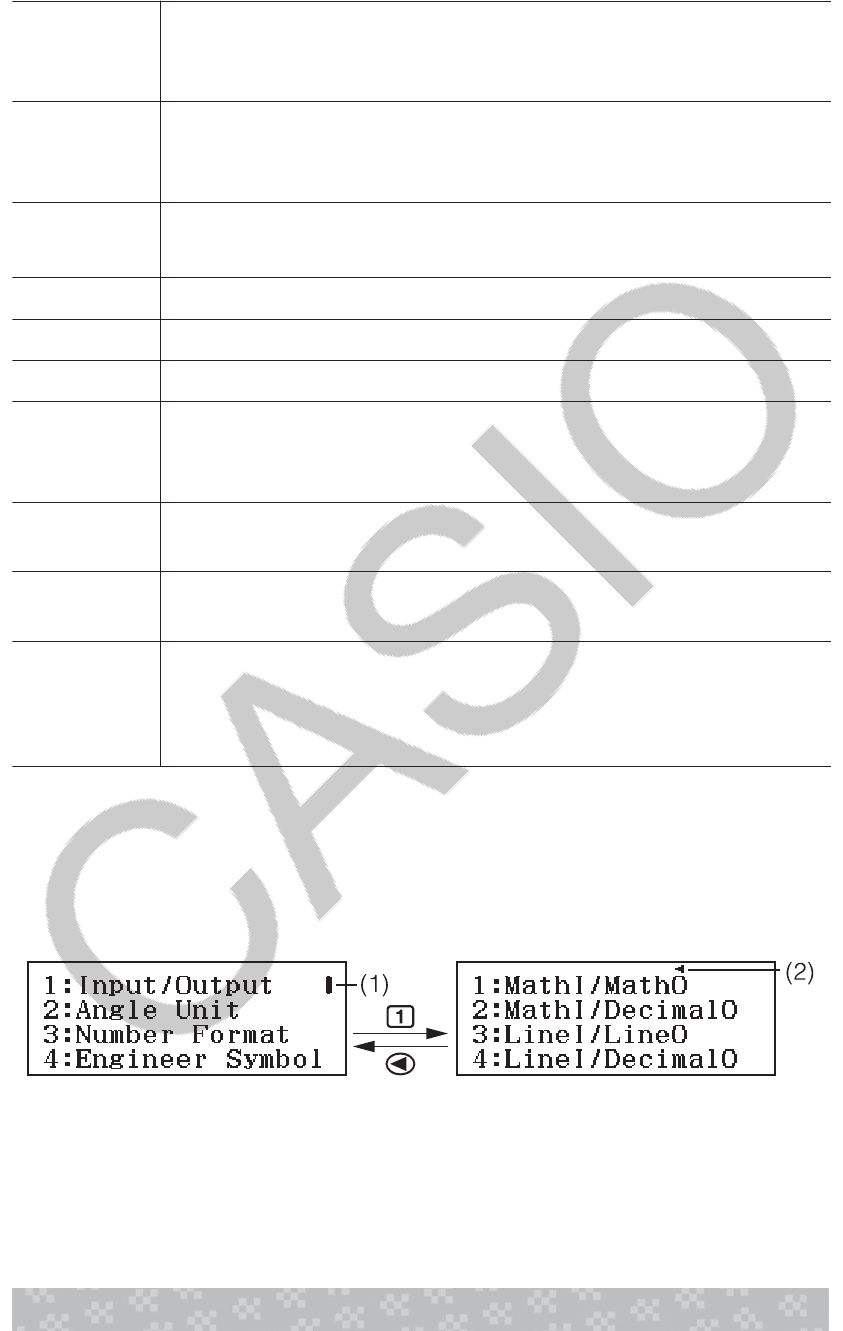 Alcune operazioni della calcolatrice sono effettuate con i menu. I menu