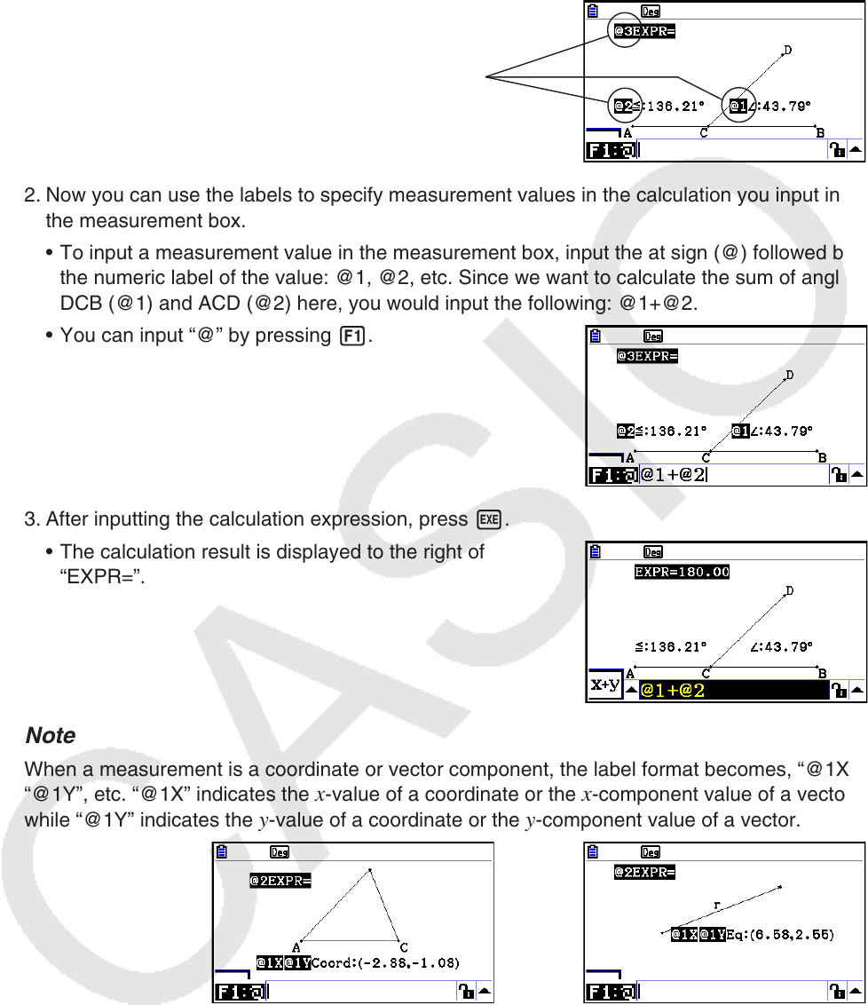 When a measurement is a coordinate or vector component, the label format becomes, “@1X”,