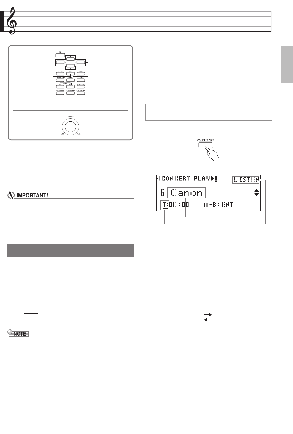 • Each press of the CONCERT PLAY button toggles