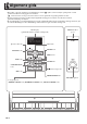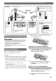 Voorbereidingen 9. Maak eerst d.m.v. de twee schroeven de achterkant van de piano (zowel de linker- als de rechterkant) vast aan de standaard. Maak daarna d.m.v. de twee schroeven de voorkant van de piano (zowel de linker- als de rechterkant) vast. • Als het moeilijk is om de schroeven naar binnen te steken, lijn dan de achterkant van de piano uit met de zijpanelen van de standaard (op de plaats aangegeven met in de afbeelding). Aansluiten van de snoeren 1.