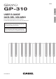 Reference Product Specifications Model GP-310BK/GP-310WE Keyboard 88-key piano keyboard • Layer, Split • Duet: Adjustable tone range (–2 to +2 octaves) • Transpose: 2 octaves (–12 to 0 to +12) • Octave shift: 4 octaves (–2 to 0 to +2) Sound Source • • • • • • Acoustic Simulator Damper Resonance, Damper noise, Hammer response, String resonance, Lid simulator, Key on action noise, Key off action noise Effects Brilliance (–3 to 0 to 3), Hall simulator (12 types), Chorus (4 types), DSP, Headphone mode,