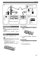 事前準備 1. 解開將踏板線綁在橫梁 背面上的帶子 並從橫梁中拉出踏板線。 , 3. 將背板 插入側板的溝槽 內。 • 安裝背板 時,要確認背板上位置較高的螺絲孔在 右邊,而位置較低的螺絲孔在左邊。 1 低 高 踏板線 2. 將側板 及 安裝在橫梁 螺絲 固定側板。 上。用四個 • 安裝 部分時,將托架 插入橫梁 兩側的 槽中。若托架 未在橫梁 的兩側插到底,螺絲 將無法插入托架 的螺絲孔中並損壞螺絲的 螺紋。 • 用螺帽 蓋在螺絲頭上。 4.