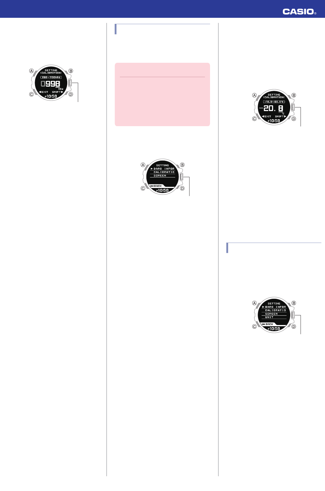 这会显示“气压计/温度模式”设置屏幕。