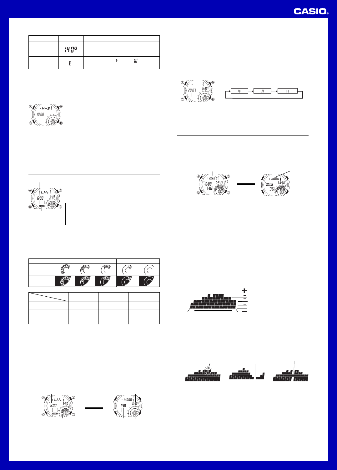 • 當月球資料畫面顯示時,按 D 鈕可進至下一日。