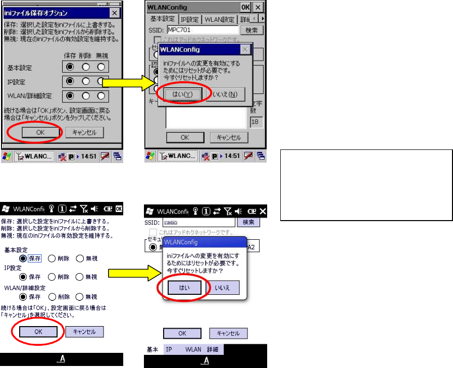 設定の保存の確認画面となります。