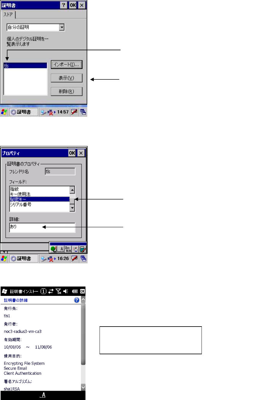 CE OS は、インポートした暗号鍵を確認するために証明書を表示させます。