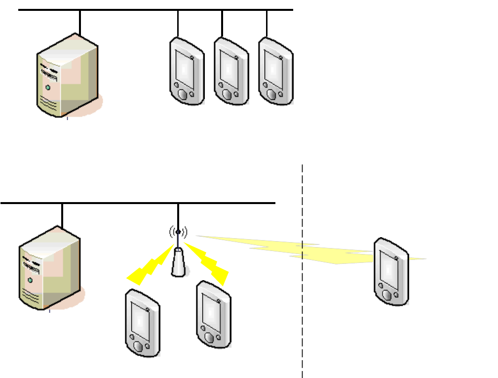 それに比較して、無線 LAN の場合には、電波を使用した通信である為、電波が届く範囲であれば