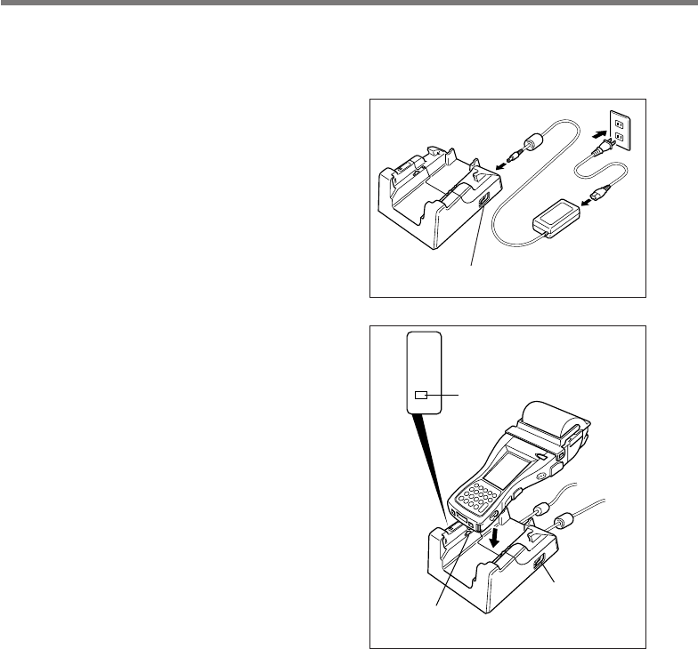 Handheld Printer Terminal onto the Cradle-type Battery Charger. This causes the