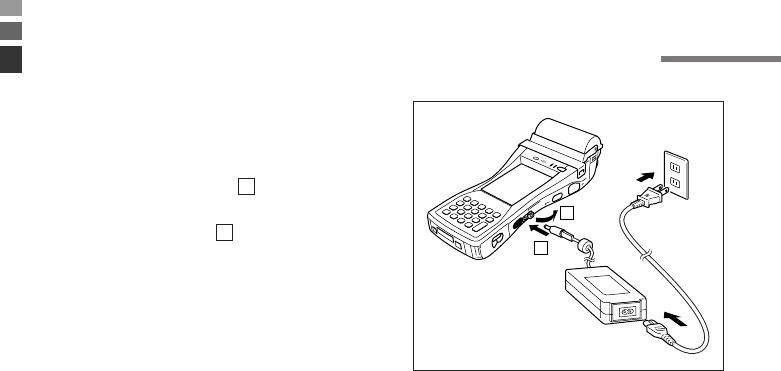• Turn off the power of the Handheld Printer Terminal when connecting the AC