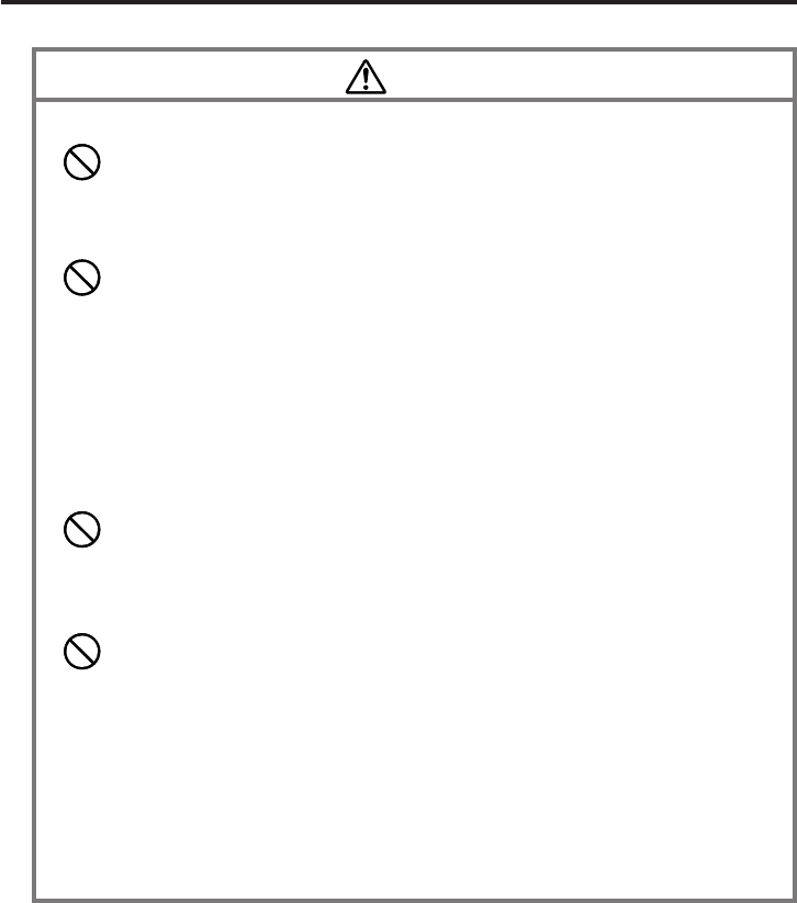 • Should the LCD panel glass break, never touch the liquid inside. Doing so