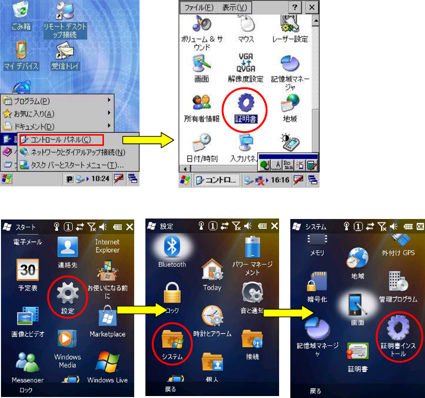 よって、ハンディターミナルに証明書のインポート(インストール)が必須となります。
