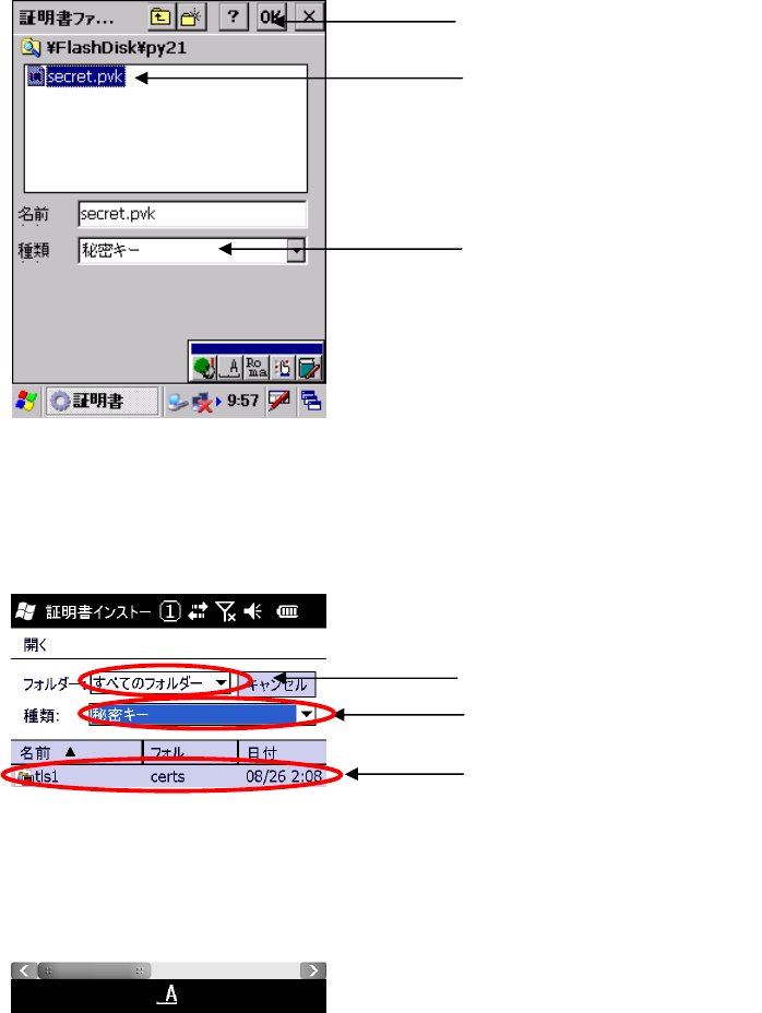 CE OS は、証明書のインポートと同様 OK のタップで暗号鍵が置かれているフォルダーの選択画面が表