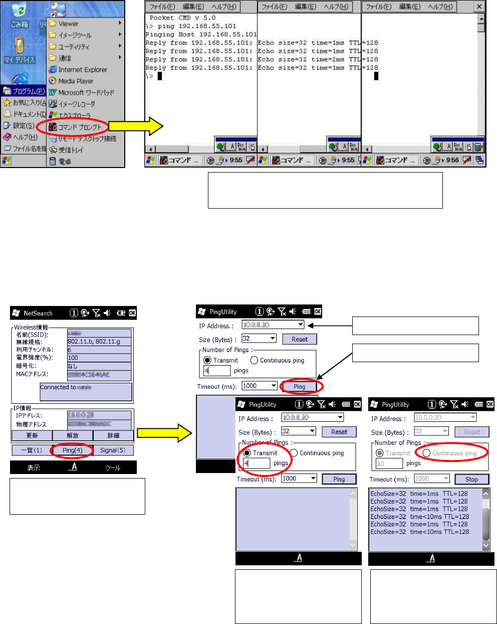Windows Mobile では、コマンドプロンプトの【ping】コマンドありません。