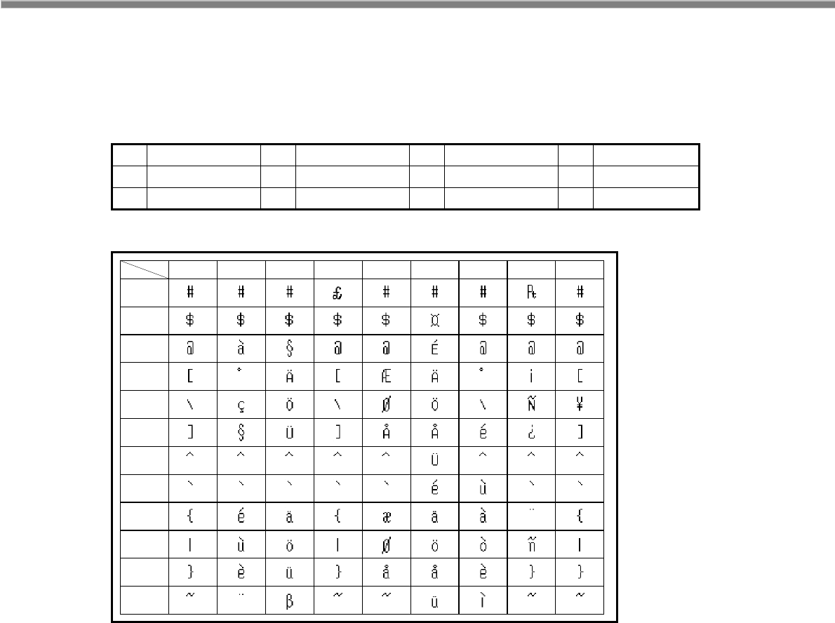 えて各国に対応します。下表は国際文字選択機能によって置き換えられる文字と国の関係を表していま