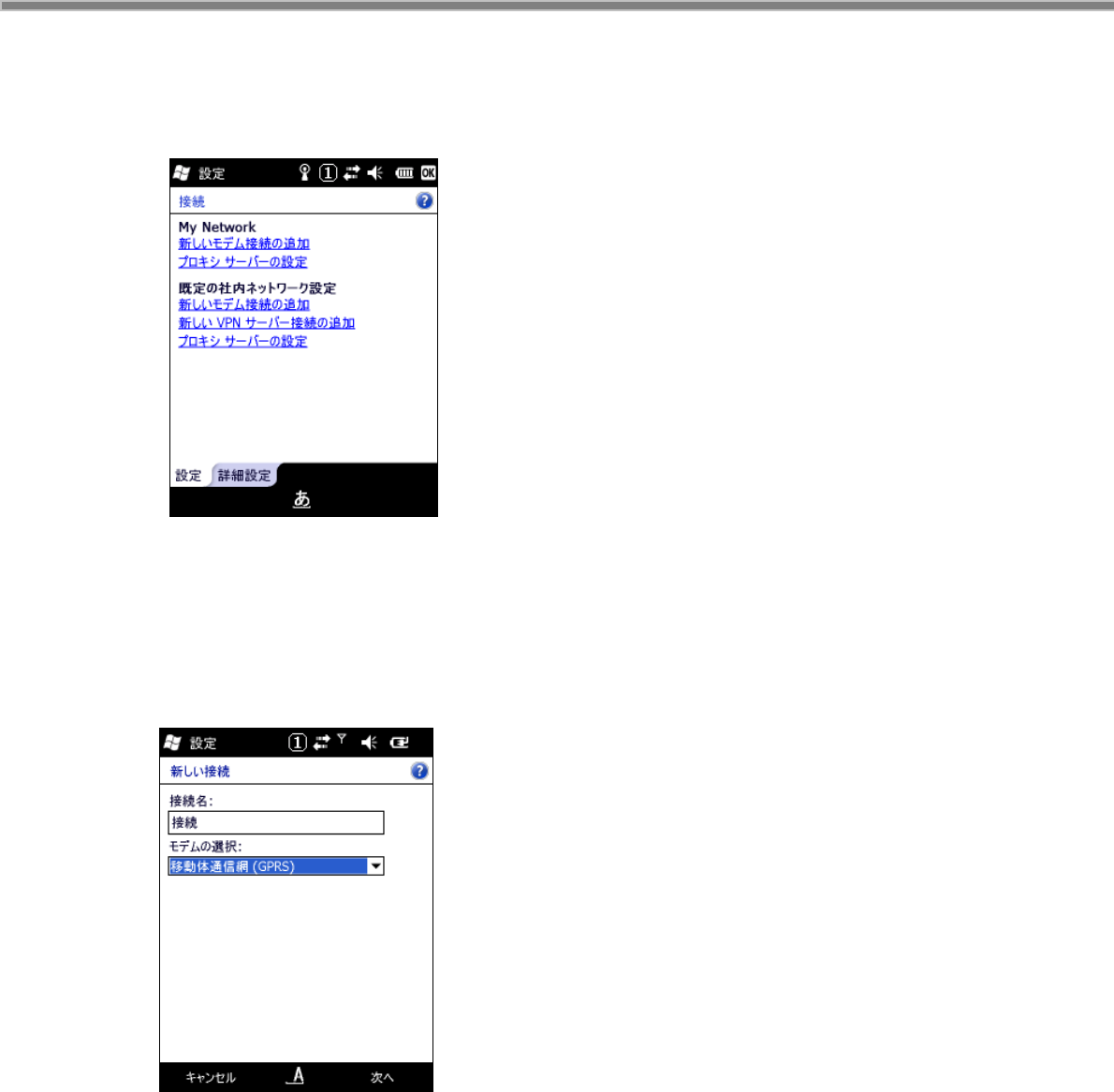 下記メニューでモデムの選択を移動体通信網(GPRS)”に設定します。