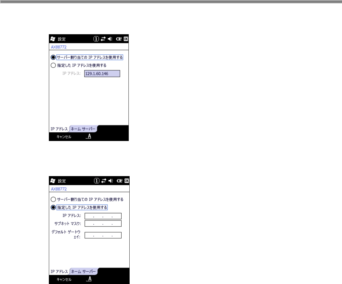 “サーバー割り当ての IP アドレスを使用する”を指定した場合自動で取得した IP アドレスが画面の下に表