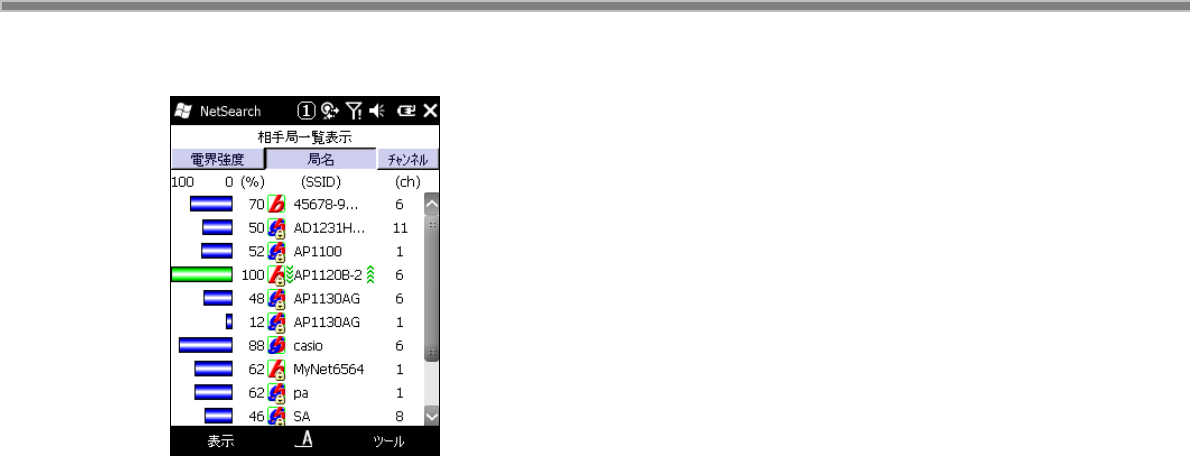 局名の先頭には、相手局の無線規格 802.11b802.11g を表すアイコンを表示します。