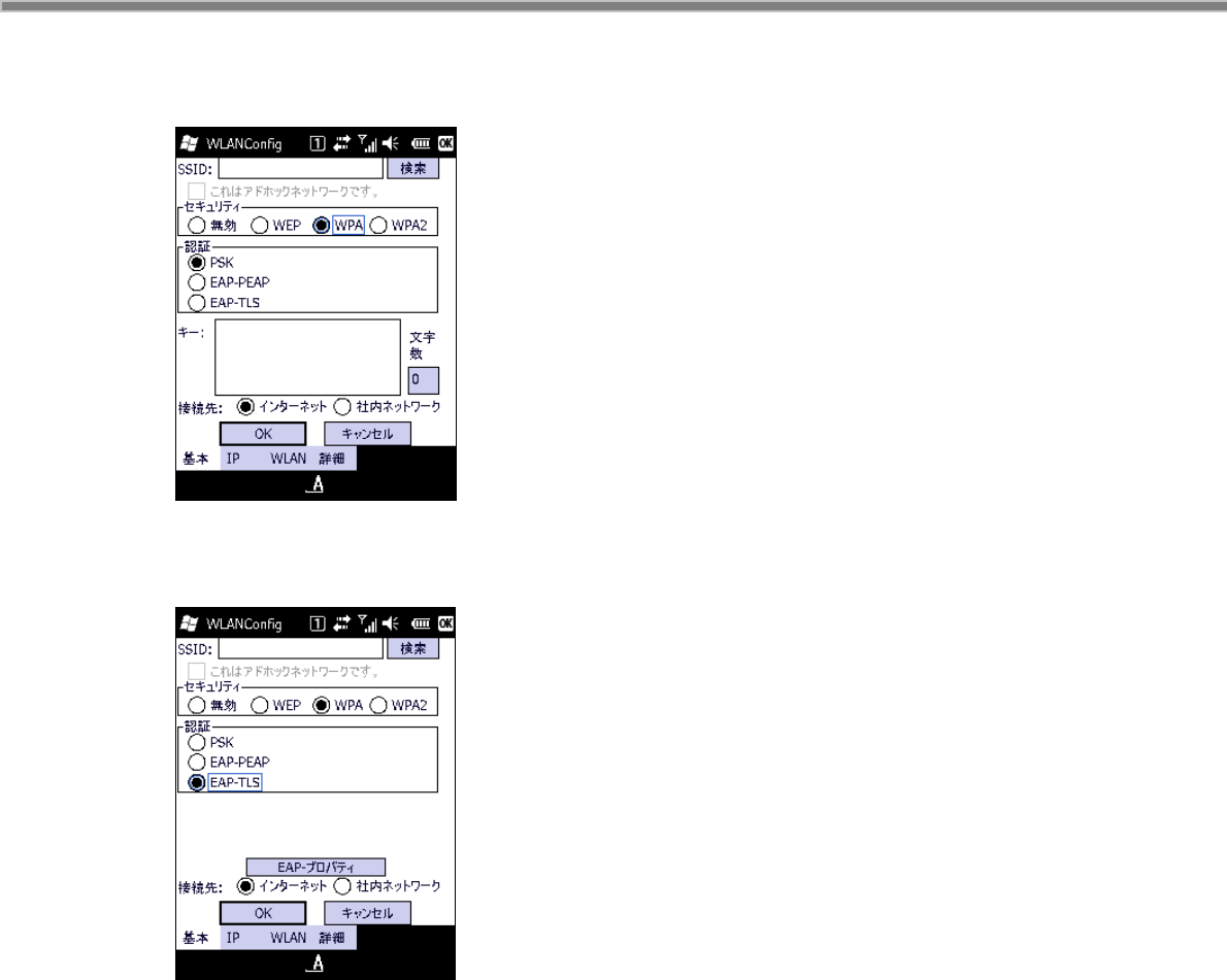 WPA については、PSKEAP-PEAPEAP-TLS の認証が設定できます。