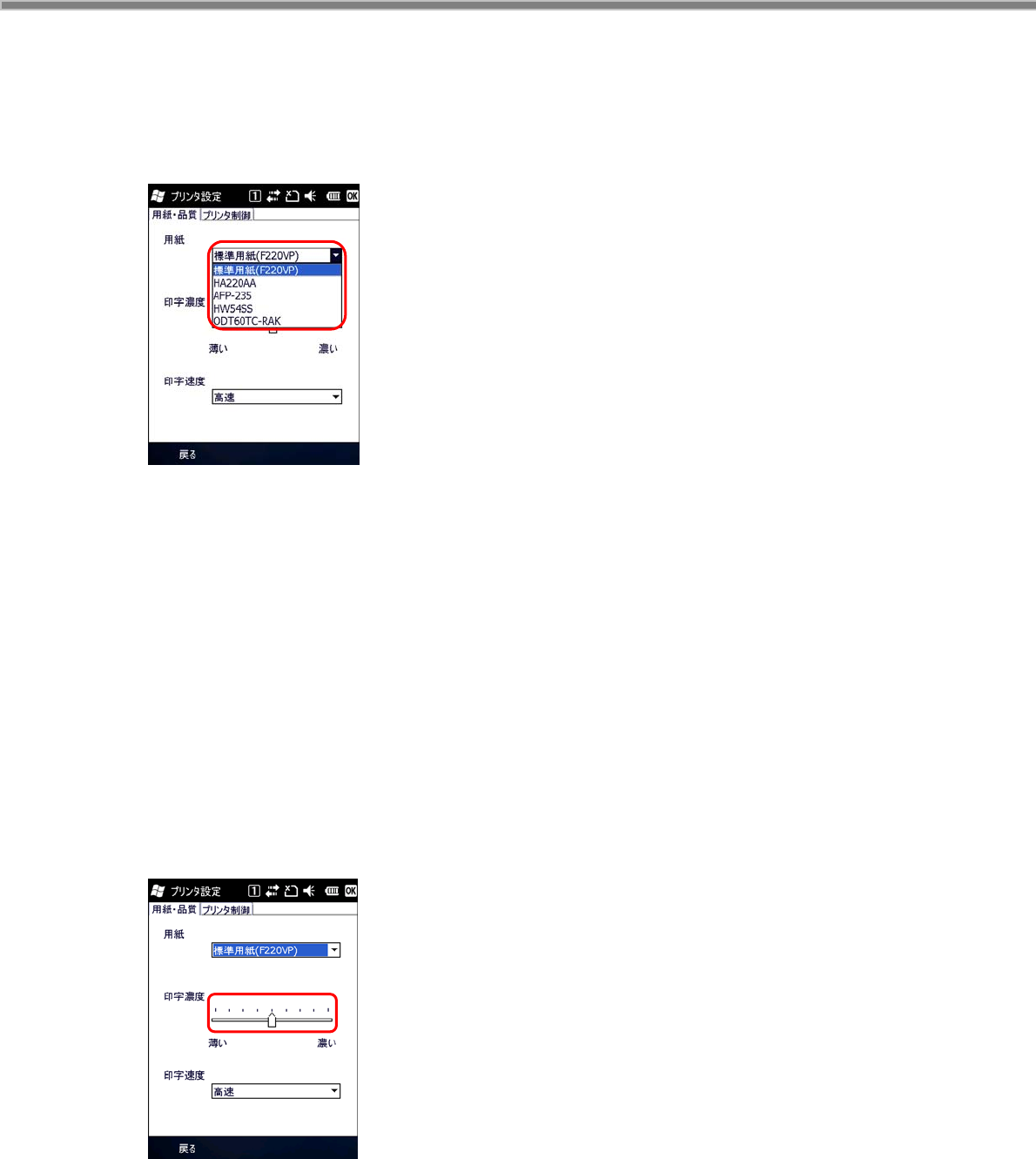 ■スライダーボタンを左右に操作することで印字濃度の変更を行います。