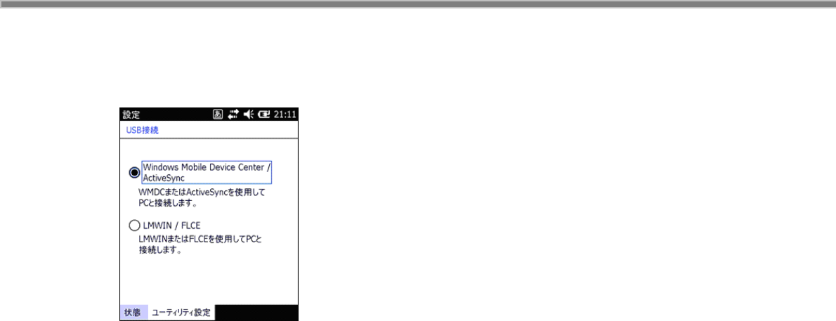 IT-9000 と PC を USB 接続する場合の設定を“Windows Mobile Device Center/ActiveSync”用に変更し