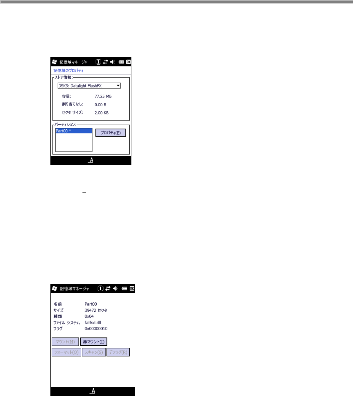 パーティションのプロパティダイアログを表示し、下記操作を行います。
