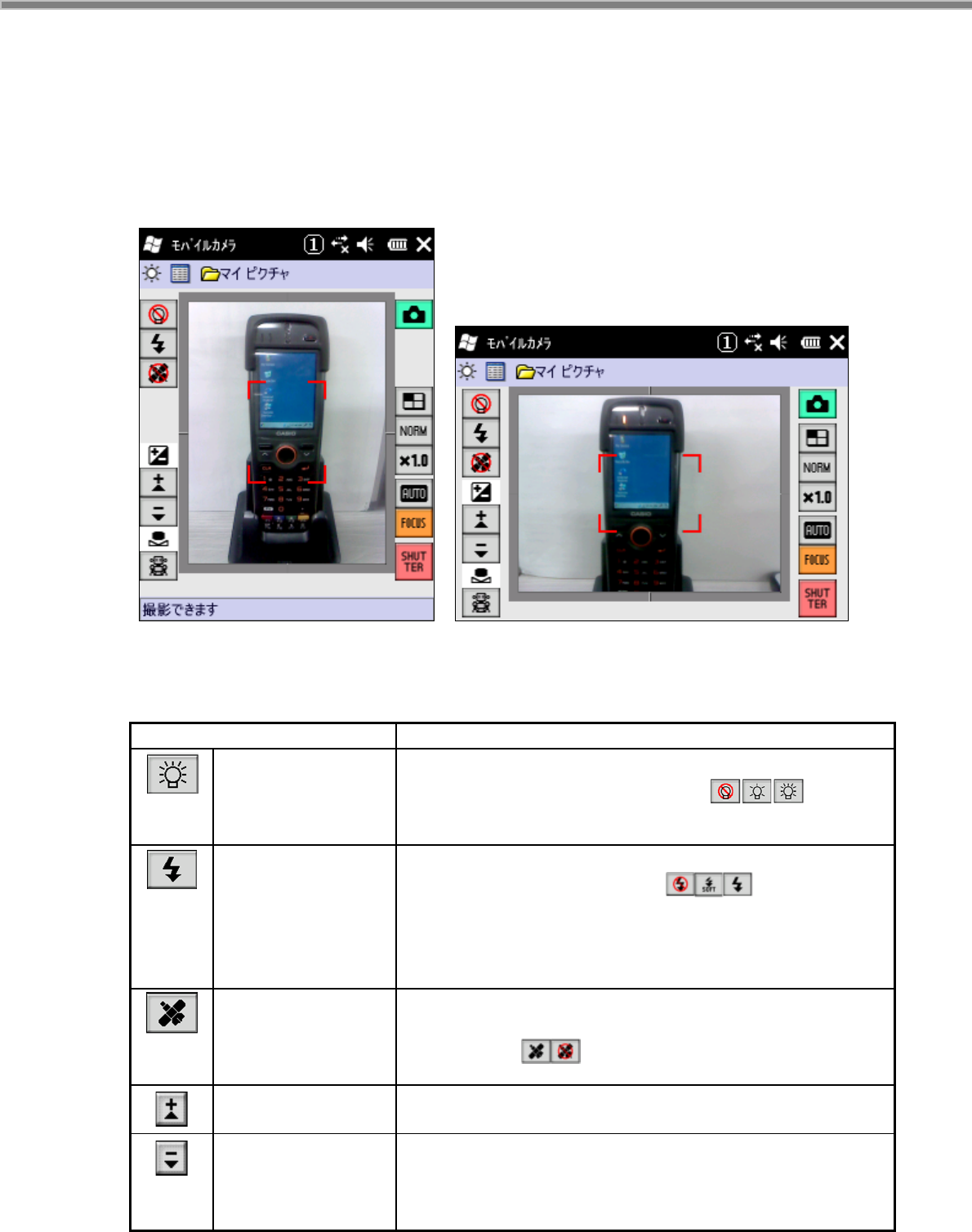 LED フラッシュ 「LED フラッシュ」ボタンをタップする事で、LED の消灯、50%点灯、