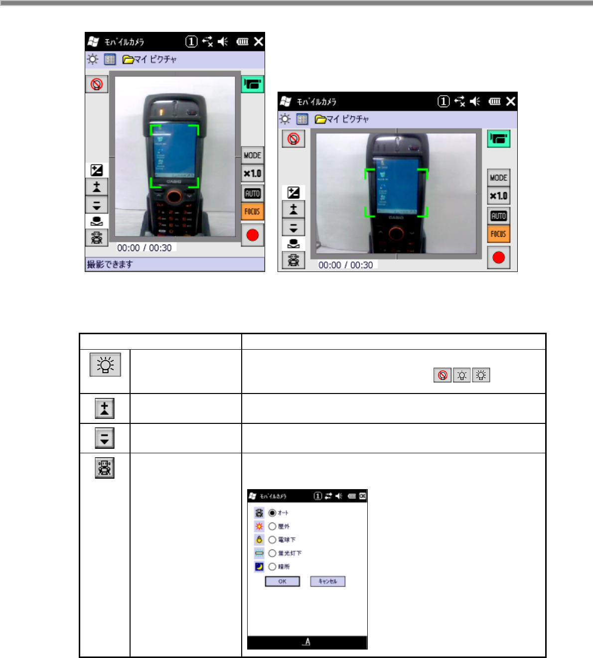 ライトモード ライトモードを「オート」、「屋外」、「電球下」、「蛍光灯下」、「暗所」か