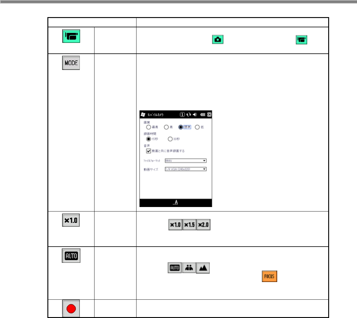 5. 動画サイズ(現在のバージョンでは 1/4VGA 固定です。)