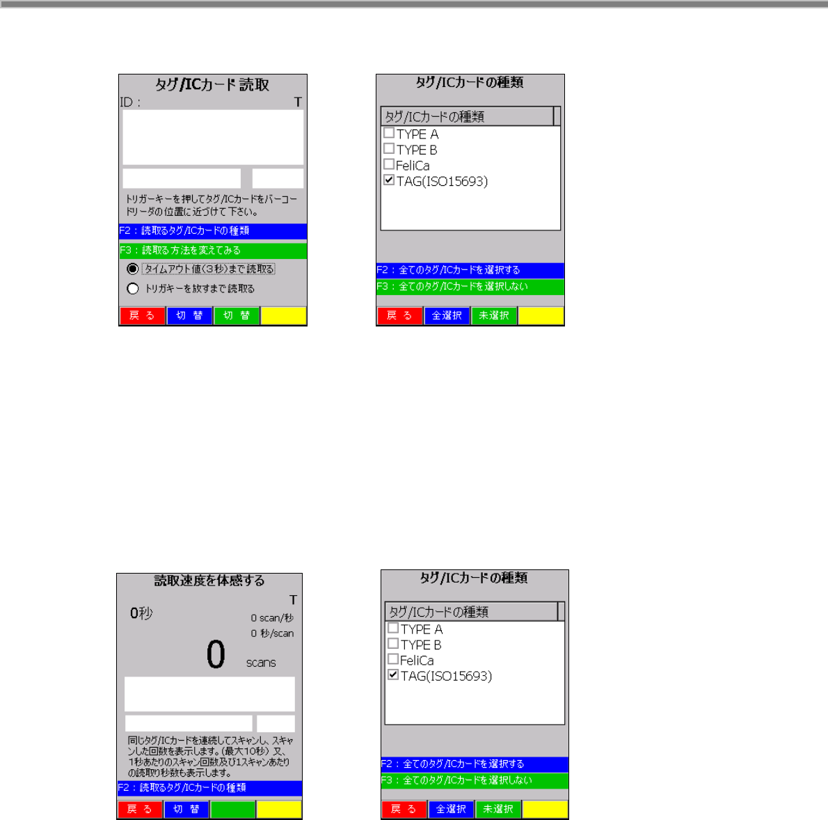 又は画面の切換えボタン(青)を押すことで、読取るカード/タグ種類を変更できます。F3 キー又は画面の