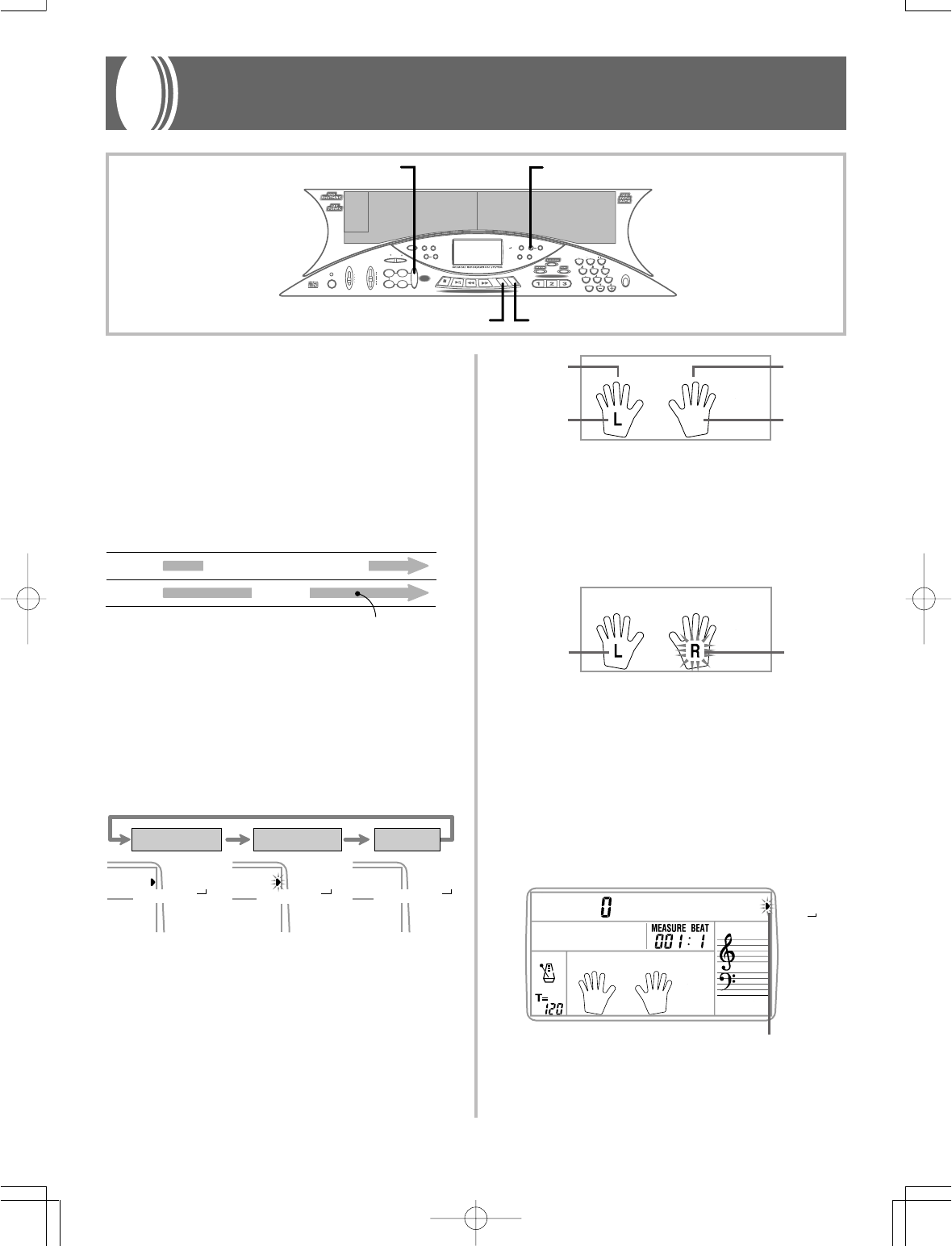 Bokstaven som anger ett spår (L eller R) visas på skärmen när inspel-